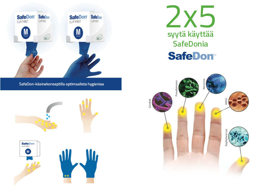 käyttäjäystävällinen käsinekonsepti mahdollistaa nopean ja helpon käsineiden pukemisen